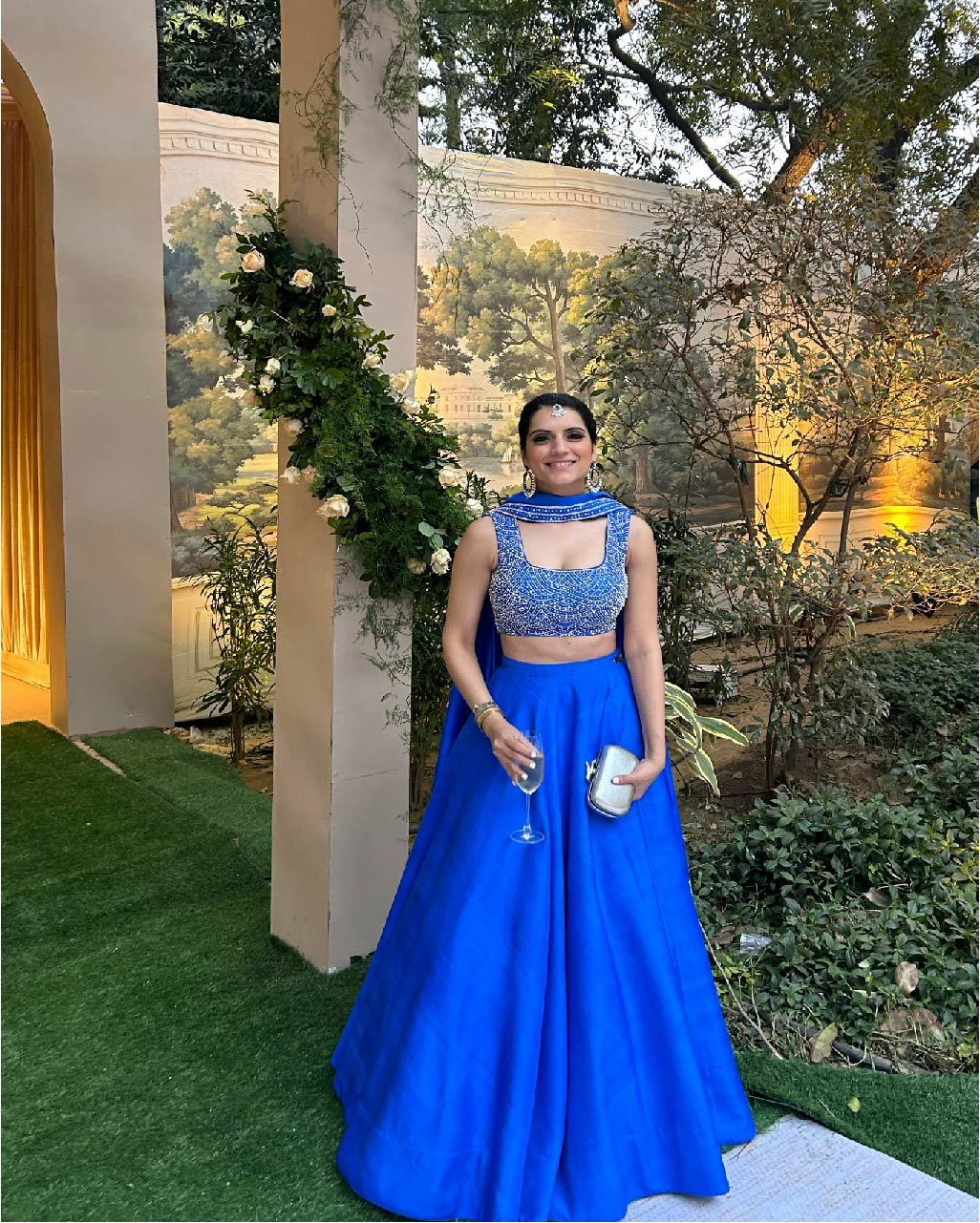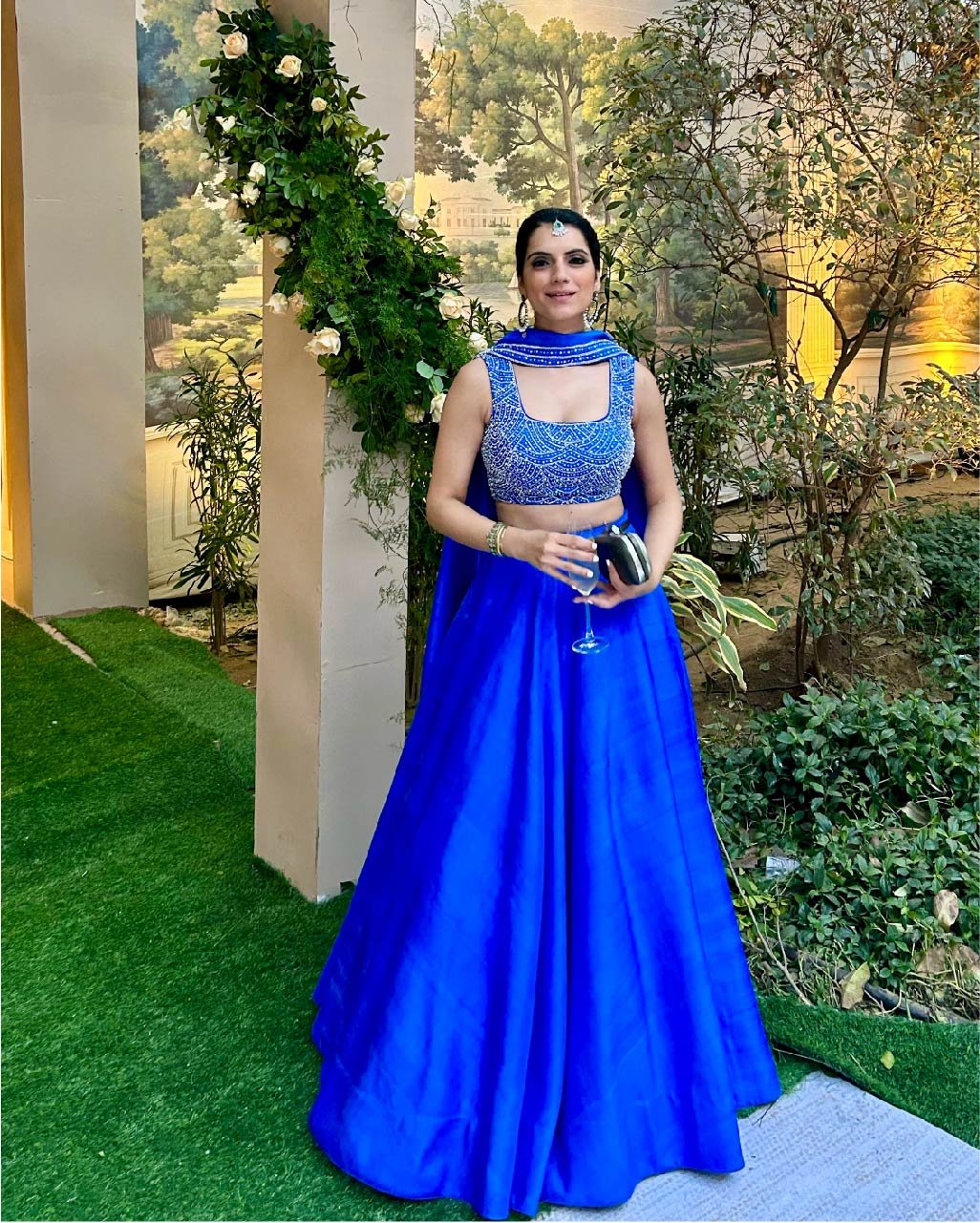 Pearl and crystal embroidered blouse and lehenga made of khurkhul silk with mulberry silk dupatta.